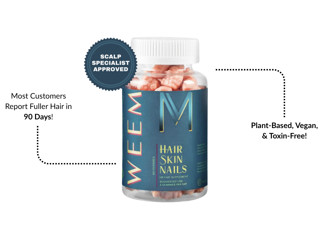 So instead of containing the wrong nutrients or going right through you, WEEM is absorbed internally. That means they can nourish your scalp from the inside out to support stronger, healthier hair growth.